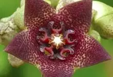 巨花犀角又称大豹皮花,是夹竹桃科犀角属的一种植物。茎粗,花大,边缘生长细毛。植株柱形多分枝呈丛生,柱形具4棱,棱缘具细小疣突。花大,五角星形黄色,并有横向棕褐色斑纹,似豹皮而得名。花期夏秋两季。…全部>>