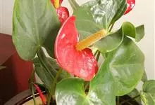 花烛,别名红鹅掌、红掌、安祖花等,为天南星科花烛属的一种多年生草本植物。其茎矮;叶互生,叶片革质,有光泽,阔心形、圆心形,先端钝或渐尖,基部深心形;肉穗花序有细长花序梗,佛焰苞深红色或橘红色,…全部>>