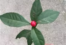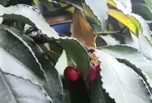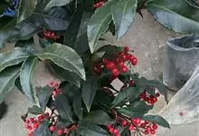 朱砂根是报春花科紫金牛属植物,又名铁凉伞、红铜盘、百两金、大罗伞、开喉箭等,为常绿小灌木,高1~2米,茎粗壮,无毛,除侧生特殊花枝外,无分枝,叶片革质或坚纸质,椭圆形、椭圆状披针形至倒披针形,…全部>>