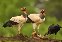 王鹫:是美洲鹫科、王鹫属大型食腐鸟类。体型很大,体长约78厘米。头部裸露,色彩极鲜艳醒目。嗉囊发达。尾短。它的头部及颈部没有羽毛,皮肤颜色有异,包括黄色、橙色、蓝色、紫色及红色。…全部>>