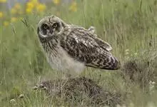 短耳鸮又名小耳木兔、田猫王、夜猫子等,是鸮形目鸱鸮科耳鸮属中小型猛禽动物。成鸟面盘显著,眼周黑色;眼先及内侧眉纹灰白色,面盘余部棕黄色杂以黑色细羽干纹;耳簇羽短小而几乎不外露,…全部>>