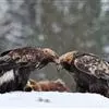 金雕:属于鹰科、雕属的猛禽。体长76-102厘米,翼展达2.3米,体重2-6.5千克。雌雄同色。未成年时,头、颈黄棕色;两翼飞羽除了最外侧三枚外基部均缀有白色,其余身体部分暗褐色;羽尾灰白色,…全部>>