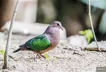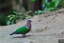 绿背金鸠体长约25厘米,是中等体型、尾甚短的地栖型斑鸠。下体粉红,头顶灰色,额白,腰灰,两翼具亮绿色。雌鸟头顶无灰色。飞行时背部两道黑色和白色的横纹清晰可见。主要栖息于2000米以下的山地森林中,…全部>>