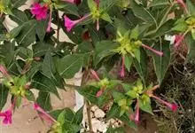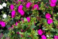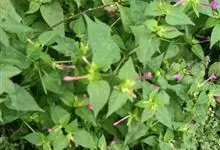 即紫茉莉,英文名:Four-o'clock,Marvel of Peru,为紫茉莉科、紫茉莉属多年生草本植物,一年生栽培。株高50~80cm。根粗壮,茎多分枝而散生。叶对生,卵形或心脏形。花数朵簇生…全部>>