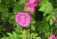 玫瑰:蔷薇科、蔷薇属的灌木;株高达2米;茎粗壮,丛生;小枝密生线毛,针刺和腺毛,有皮刺,淡黄色,被绒毛;小叶5枚,椭圆形或倒卵形,长1.5-4.5厘米,有尖锐锅齿,上面无毛,叶脉下陷,有褶皱,…全部>>