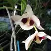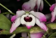 玫瑰石斛是兰科石斛属的多年生附生草本植物。茎斜下或下垂,青绿色,圆柱形,节间鞘具绿或白色相间的条纹;叶窄披针形;花序短,生于已落叶的老茎上部,花序梗长,萼片和花瓣白色,上部带淡紫色,干后蜡质状,…全部>>
