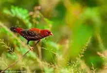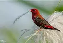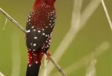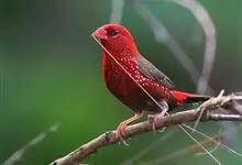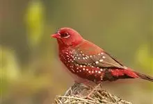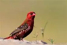 红梅花雀小型鸟类,体长9-10厘米。雄鸟通体朱红色,背、肩、胸等满布白色小斑点,两翅和尾黑褐色均具白色端斑,嘴红色,脚蜡黄色。雌鸟上体淡褐色或赭褐色,翅上中覆羽、大覆羽和内侧飞羽末端具白色斑点,…全部>>