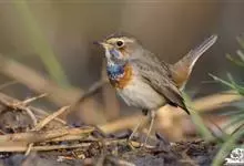 蓝点颏亦称“蓝喉歌鸲”,通称蓝靛颏儿。身体大小和麻雀相似,体长12-13厘米,体重17-18克。头部、上体主要为土褐色。眉纹白色。尾羽黑褐色,基部栗红色。颏部、喉部辉蓝色,下面有黑色横纹。下体白色。…全部>>