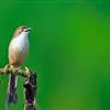 金眼鹛雀是莺科、鹛雀属小型鸟类。体长16-20厘米。头顶和上体棕褐色,两翅表面肉桂红色,尾褐色具明暗相间横斑。眼周金黄色,眼先、眼上、眼下、颊以及颏、喉和上胸概为白色,其余下体茶黄色,脚橙黄色。…全部>>