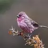 藏朱雀:全长约17-18厘米。雄鸟头部深红色具光辉,喉部暗红色具白色点斑;背部灰白色,各羽具玫瑰红色羽端,形成许多斑纹;腰部淡玫瑰红色;翅暗褐色,沾灰白,羽端沾玫瑰红或灰白色;尾暗棕色,端缘玫瑰红色…全部>>