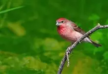 普通朱雀是雀形目雀科朱雀属鸟类,又名红朱雀、马料、青麻料。雄鸟上体红色,下体淡红色;头部、喉部、胸部及腰部亮红色;背部褐色染红色;两翼及尾黑褐色,羽缘染红色。雌鸟上体橄榄褐色,下体近白色,…全部>>