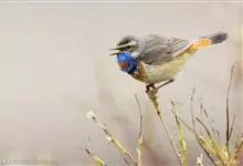蓝点颏亦称“蓝喉歌鸲”,通称蓝靛颏儿。身体大小和麻雀相似,体长12-13厘米,体重17-18克。头部、上体主要为土褐色。眉纹白色。尾羽黑褐色,基部栗红色。颏部、喉部辉蓝色,下面有黑色横纹。下体白色。…全部>>