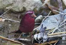 喜马拉雅白眉朱雀:小型鸟类,体长15-17厘米,体重24-35克。额基、眼先深红色,前额和一条长而宽阔的眉纹珠白色沾有粉红色并具丝娟光泽,在暗色的头部极为醒目。头顶至背棕褐或红褐色、具黑褐色羽干纹,…全部>>