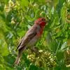 普通朱雀是雀形目雀科朱雀属鸟类,又名红朱雀、马料、青麻料。雄鸟上体红色,下体淡红色;头部、喉部、胸部及腰部亮红色;背部褐色染红色;两翼及尾黑褐色,羽缘染红色。雌鸟上体橄榄褐色,下体近白色,…全部>>