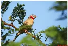 红梅花雀小型鸟类,体长9-10厘米。雄鸟通体朱红色,背、肩、胸等满布白色小斑点,两翅和尾黑褐色均具白色端斑,嘴红色,脚蜡黄色。雌鸟上体淡褐色或赭褐色,翅上中覆羽、大覆羽和内侧飞羽末端具白色斑点,…全部>>