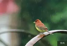 普通朱雀是雀形目雀科朱雀属鸟类,又名红朱雀、马料、青麻料。雄鸟上体红色,下体淡红色;头部、喉部、胸部及腰部亮红色;背部褐色染红色;两翼及尾黑褐色,羽缘染红色。雌鸟上体橄榄褐色,下体近白色,…全部>>