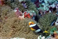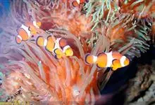 小丑鱼是鲈形目雀鲷科小丑鱼属鱼类的统称。体长仅5—6厘米。身体色彩艳丽,多为红色、橘红色;除透明的胸鳍与软背鳍鳍条外部,其余鳍均为黑色。体形怪异,体色多变,通常体侧有白色条纹。…全部>>