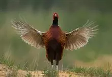 环颈雉是雉科、雉属的一种走禽,共有30个亚种。体重900-1050克,体长53-89厘米。体型较家鸡略小,但尾巴却长得多。雄鸟和雌鸟羽色不同,雄鸟羽色华丽,多具金属反光,…全部>>