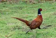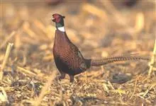 环颈雉是雉科、雉属的一种走禽,共有30个亚种。体重900-1050克,体长53-89厘米。体型较家鸡略小,但尾巴却长得多。雄鸟和雌鸟羽色不同,雄鸟羽色华丽,多具金属反光,…全部>>