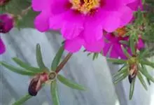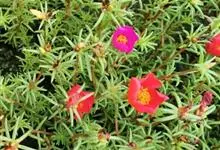 大花马齿苋:一年生草本,高10-30厘米。茎平卧或斜升,紫红色,多分枝,节上丛生毛。叶密集枝端,较下的叶不规则互生,叶片细圆柱形,无毛。花单生或数朵簇生枝端,直径2.5-4厘米,…全部>>