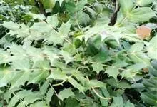 十大功劳 Fedde),小檗科十大功劳属常绿灌木植物。叶子较大且较多,呈椭圆形,绿色,表面光滑无毛,叶柄较长;花朵较小,呈多边形,黄色,花瓣对称分布,表面有绒毛;果实呈圆形,褐色,…全部>>
