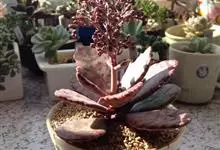 伽蓝菜是景天科伽蓝菜属植物。多年生草本,高20-100厘米。叶对生,中部叶羽状深裂,全长8-15厘米,裂片线形或线状披针形。聚伞花序排列圆锥状,长10-30厘米;苞片线形。花期3月。…全部>>