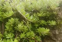 垂盆草别名石头菜、狗牙瓣、豆瓣菜等,为景天科景天属的多年生草本植物。不育枝及花茎细,匍匐而节上生根,直到花序之下;3叶轮生,叶倒披针形至长圆形,先端近急尖,基部急狭,有距;聚伞花序,花无梗,…全部>>