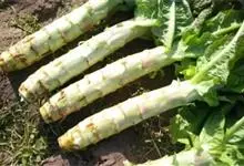 莴苣,是菊科莴苣属一年生或二年生草本植物。其地下根垂直,地上茎直立,茎枝白色;叶子呈椭圆形,其边缘有波状,两面无毛;花冠呈球形,外面无毛,…全部>>
