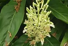 华山姜 Rosc.)是姜科,山姜属多年生草本植物,株高约1米。叶片披针形或卵状披针形,顶端渐尖或尾状渐尖,基部渐狭,两面均无毛;叶舌膜质,具缘毛。花组成狭圆锥花序,小苞片花时脱落;花白色,萼管状,…全部>>