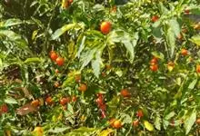 珊瑚樱是茄科茄属植物。株高达2米;植株无毛;叶窄长圆形或披针形,长1-6厘米,基部窄楔形下延,全缘或波状,侧脉4-7对;叶柄长2-5毫米;花单生,稀双生或成短总状花序与叶对生或腋外生,…全部>>