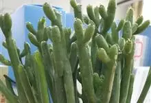 膨珊瑚,大戟科大戟属植物。喜温暖干燥和阳光充足的环境,耐干旱和半阴,不耐寒,忌阴湿,无明显休眠期。生长适温15-25℃,冬季不低于10℃。植株形似珊瑚,茎干多分枝,全年碧绿呈圆柱状,叶如雀舌。…全部>>