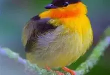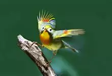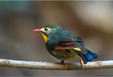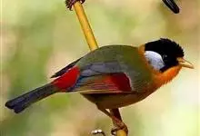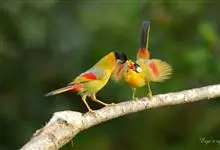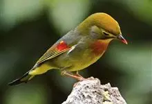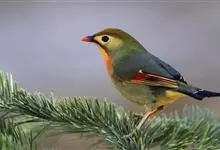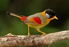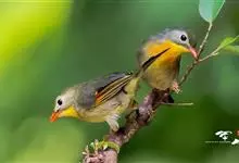银耳相思鸟小型鸟类,体长14~18厘米。头顶黑色,耳羽银灰色,前额橙黄色;外侧飞羽橙黄色,基部朱红色,极为鲜艳、醒目。尾圆形,尾上、尾下覆羽朱红色,尾暗灰褐色,外侧尾羽橙黄色,其余上体橄榄绿或橄榄黄色。…全部>>