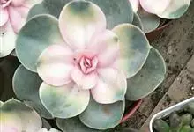 紫珍珠是景天科石莲花属的多年生肉质草本植物。植株中小型;叶片肉质,匙形,呈莲座状紧密排列;叶片粉紫色,叶缘呈粉白色,光照充足时颜色亮丽,不足时叶色会呈现深绿色或灰绿色,叶面光滑,被轻微白粉,…全部>>