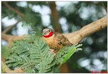 红梅花雀小型鸟类,体长9-10厘米。雄鸟通体朱红色,背、肩、胸等满布白色小斑点,两翅和尾黑褐色均具白色端斑,嘴红色,脚蜡黄色。雌鸟上体淡褐色或赭褐色,翅上中覆羽、大覆羽和内侧飞羽末端具白色斑点,…全部>>