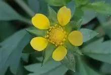 蛇莓 Teschem.),别名三爪凤、龙吐珠、东方草莓等,为蔷薇科蛇莓属的多年生草本植物。其根茎短,粗壮;匍匐茎多数;小叶片倒卵形至菱状长圆形;托叶窄卵形至宽披针形;花单生于叶腋,花瓣倒卵形,…全部>>