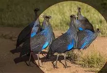 鹫珠鸡:是珠鸡科中体形最大的一种,因头颈部像兀鹫而得名。雌雄羽色相似,为黑色基底上遍布白色点斑,如同珍珠。以各种植物的种子和小型动物为食。走禽。体结实,喙短,呈圆锥形,适于啄食植物种子;脚强健,具锐爪,…全部>>