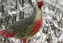 血雉雉科血雉属鸟类,别名血鸡、松花鸡,血雉的雄鸟大覆羽、尾下覆羽、尾上覆羽、脚、头侧、腊膜为红色,故称血雉。其别名甚多,各地皆异。在甘肃,因其胸侧和翅上覆羽沾绿,被称为“绿鸡”;因其羽毛形似柳叶,…全部>>
