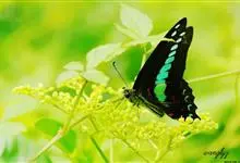 青带凤蝶Graphium sarpedon ,又名青凤蝶,是最普遍的中型凤蝶,飞行速度很快。青带凤蝶的翅膀中央有许多浅蓝色的斑点,很整齐地排列成一条直线。这些斑点由上而下逐渐变大,就像一条青色的带子。全部>>