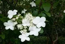 蝴蝶戏珠花 Miq.)是荚蒾科荚蒾属植物。落叶灌木,高达3米;当年小枝浅黄褐色。叶较狭,宽卵形或矩圆状卵形,有时椭圆状倒卵形。花序直径4-10厘米,外围有4-6朵白色、木型的不孕花。果实先红色后变黑色,…全部>>