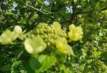 蝴蝶戏珠花 Miq.)是荚蒾科荚蒾属植物。落叶灌木,高达3米;当年小枝浅黄褐色。叶较狭,宽卵形或矩圆状卵形,有时椭圆状倒卵形。花序直径4-10厘米,外围有4-6朵白色、木型的不孕花。果实先红色后变黑色,…全部>>