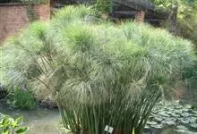 纸莎草是莎草科、莎草属的植物,具有粗壮的根状茎,高达2-3米,茎秆簇生,粗壮,直立,钝三棱形。叶退化呈鞘状,茎秆顶端着生总苞片,呈伞状簇生,总苞片叶状,披针形,顶生花序伞梗极多,细长下垂。瘦果灰褐色,…全部>>