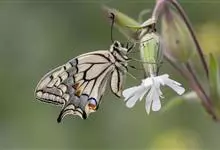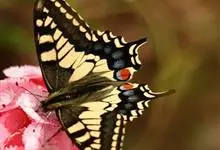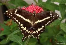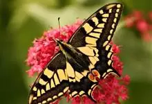 金凤蝶,是鳞翅目凤蝶科凤蝶属动物。金凤蝶为中型凤蝶,翅展70-84毫米,翅背面底色黑褐色,翅脉黑色,翅室具黄斑;前翅背面基部呈暗黄色,亚外缘为黑色,内具一列小黄斑;后翅背面亚外缘区具黑宽边,…全部>>