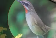 红点颏:是鸟纲、鹟科的鸣禽。又名西伯利亚歌鸲。体长14-17厘米,体重16-27克。雄鸟头部、上体主要为橄榄褐色。眉纹白色。颏部、喉部红色,周围有黑色狭纹。胸部灰色,腹部白色。雌鸟颏部、喉部不呈赤红色,…全部>>