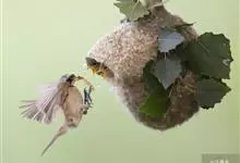 中华攀雀:体重7.5-11克,体长100-115毫米。体型纤小,雄鸟顶冠灰,脸罩黑,背棕色,尾凹形。雌鸟及幼鸟似雄鸟但色暗,脸罩略呈深色。 虹膜深褐色,嘴灰黑色,脚蓝灰色。…全部>>
