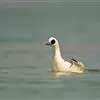 斑头秋沙鸭,是鸭科、斑头秋沙鸭属鸟类。雄鸟眼先和眼周黑色,成块斑状;头部其余部分全为白色。颈白色;背黑色,上背最前处的白羽具有黑端,相连而成两条半圆环狭带。下体白色,体侧羽毛具黑褐色波状细纹。…全部>>