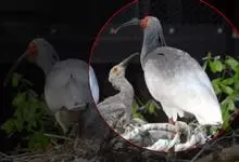 朱鹮是鹈形目鹮科朱鹮属的鸟类动物。其雄鸟通体白色,羽干及两翅与尾等均沾染粉红色;颈项上有很多长矛状羽毛,形成羽冠,耸立时非常夺目;嘴长而向下曲,呈黑色,先端朱红,脚的裸露部分亦呈亮红色。雌鸟羽色略同,…全部>>