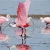 琵鹭,为6种长腿涉禽的统称。主要以虾、蟹、水生昆虫、昆虫幼虫、蠕虫、甲壳类、软体动物、蛙、蝌蚪、蜥蜴、小鱼等小型脊椎动物和无脊椎动物为食,偶尔也吃少量植物性食物。…全部>>