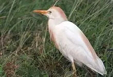 牛背鹭:体较肥胖,喙和颈较短粗。夏羽大都白色;头和颈橙黄色,前颈基部和背中央具羽枝分散成发状的橙黄色长形饰羽;前颈饰羽长达胸部,背部饰羽向后长达尾部,尾和其余体羽白色。冬羽通体全白色,个别头顶缀有黄色,…全部>>