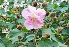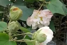 木芙蓉,锦葵科木槿属落叶灌木或小乔木。小枝上有细绒毛;叶片为卵状心形,托叶为披针形,常早落;花单生,花萼为钟形,花冠初为白色或淡红色,后逐渐变为深红色;果实为扁球形,有淡黄色的毛附着。花期8到10月。…全部>>