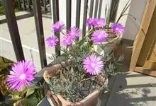 美丽日中花 N.E.Br.),是番杏科,松叶菊属多年生常绿草本。茎丛生,斜升,基部木质,多分枝。叶对生,肉质,三棱形,具凸尖头,基部抱茎,粉绿色,有多数小点。花单生枝端,苞片叶状,对生。花紫红色至白色,…全部>>